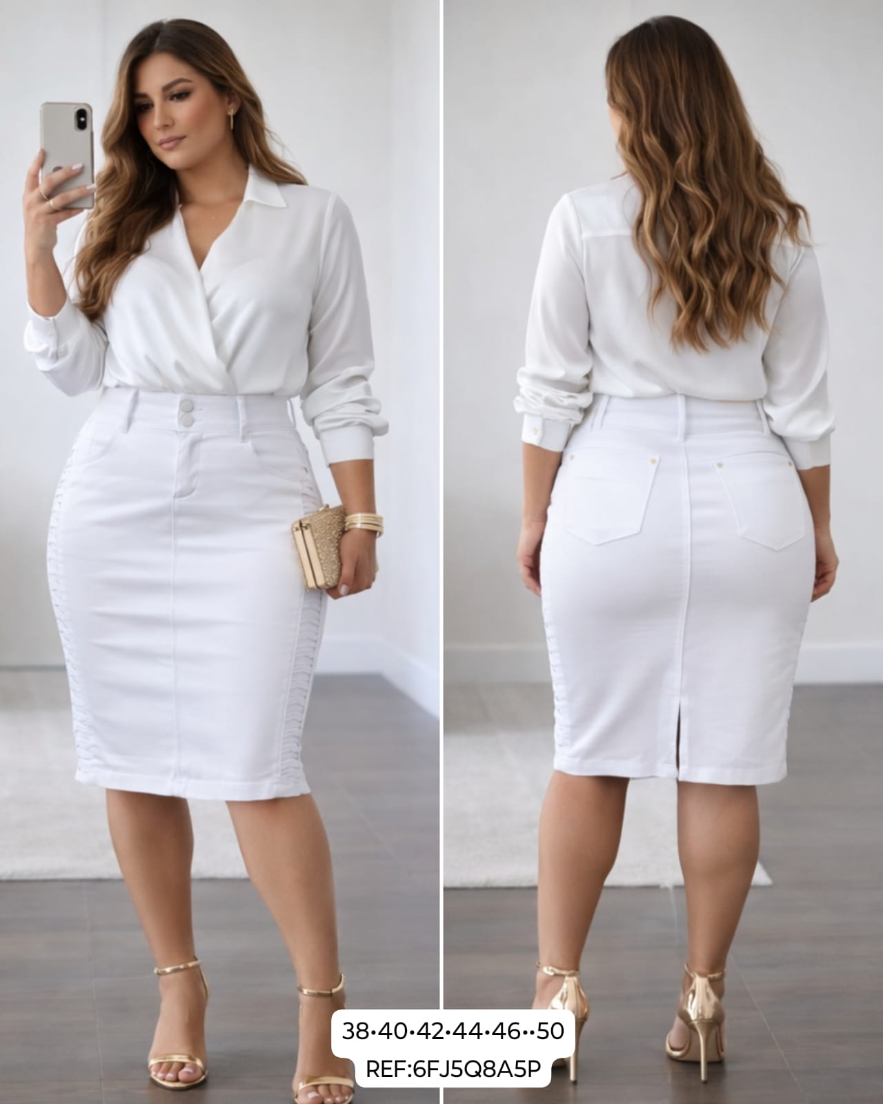✨ Saias Jeans ou Sarja com Elastano, modelagem secretária ou Midi – ✨