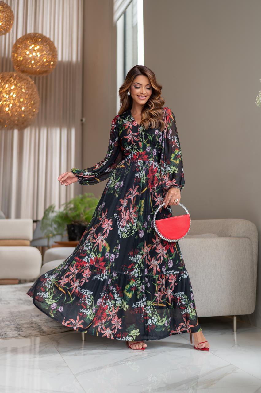 Esse vestido longo floral é a escolha perfeita para quem ama leveza, sofisticação e um visual modesto e encantador.