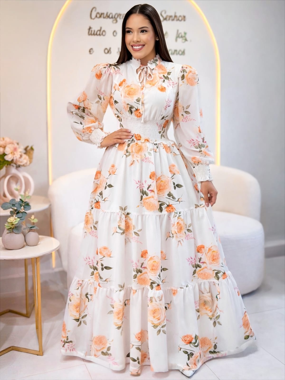 💐 Vestido confeccionado em 100% poliéster, com acabamento delicado, toque suave e excelente caimento.