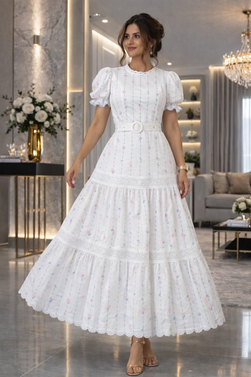 ✔ Saia com marias e detalhes de renda nos entremeios, proporcionando leveza e movimento ao caimento